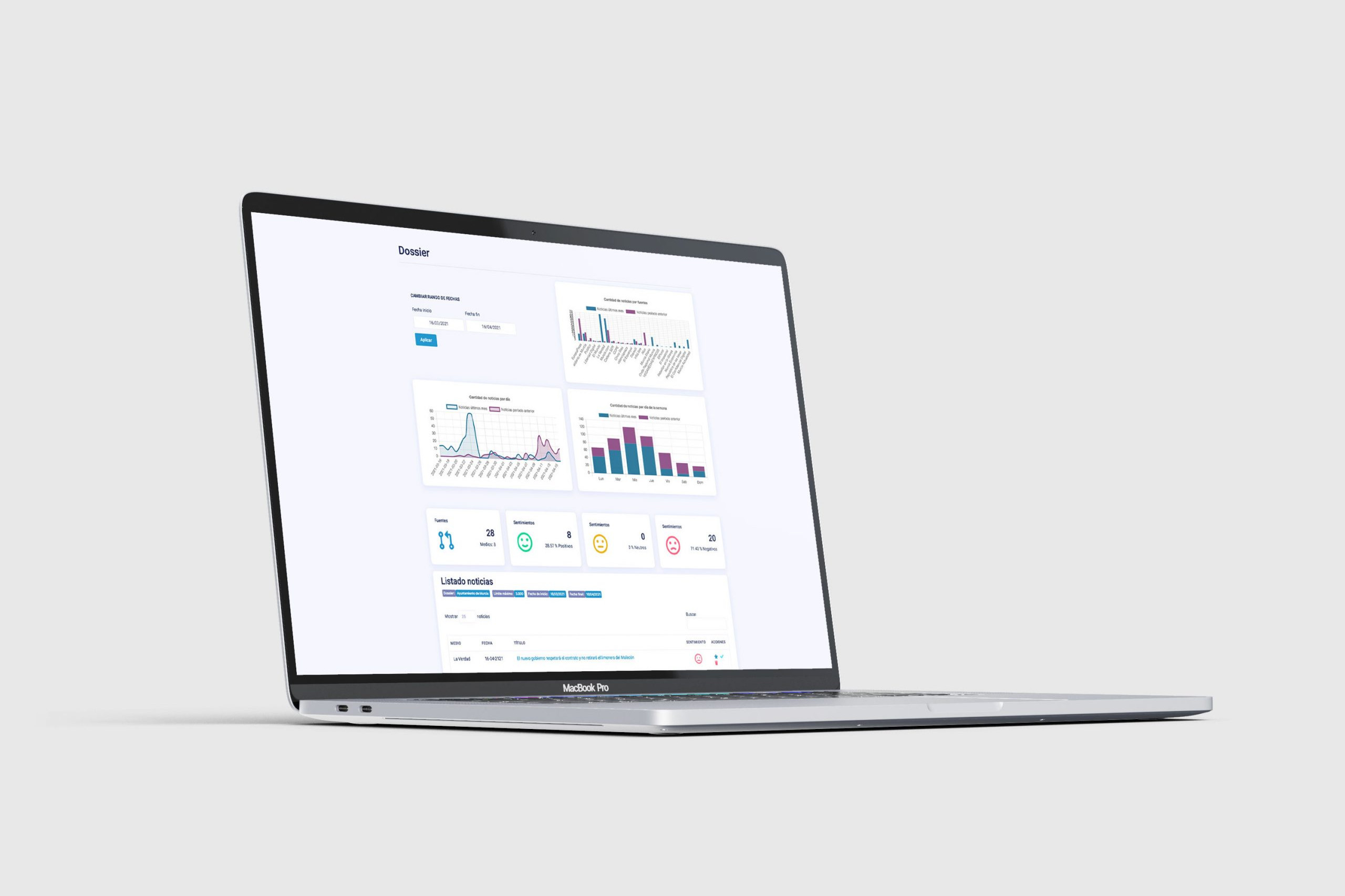 Realiza estudios de evaluación rastreando noticias de webs, blogs y medios de comunicación online. Crea redes de conocimiento sobre tu imagen, tu marca o el entorno en el que se encuentra. Obtén un resumen diario e histórico sobre tu reputación y tu información.